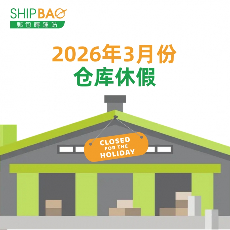 2026年2月仓库假期如下 : 加拿大 2/16-17 中国 2/15-22 中国香港总仓 2/17-19 中国台湾 2/14-22 法国 正常 德国 正常 日本大阪 2/11, 2/23 日本东京 2/11, 2/23 韩国 2/14-18 泰国 2/17 英国 正常 美国德拉华州 (免税仓及海运仓) 正常 ═══════════ 请留意安排取件 ═══════════ 仓库休假期间将暂停入仓丶出仓等作业,不便之处,敬请见谅 ! ═══════════ *仓库假期或会有临时改动,以此发布为最後更新