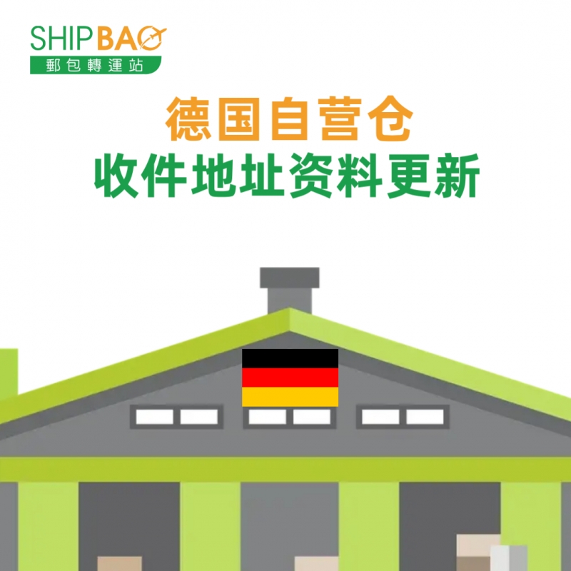 亲爱的Shipbaoer, 即日起德国自营仓收货地址已更新,已填写旧地址的货物不受影响,Shipbao仍会处理转寄。及后请填写更新地址,否则有机会影响货物转运。 新仓地址已更新到《仓库地址》页面,Shipbaoer请留意更新各网购平台默认的送货地址及发票收货人数据。 新地址启用日期 : 2026年3月18日 如有任何查询, 请联络Shipbao客服, 谢谢。 Shipbao团队