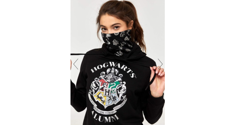 《哈利波特》官方授权加拿大服装品牌Ardene推出的周边产品。这款学院风的带帽卫衣,上面印有霍格华兹学院的校徽,内置布口罩、印有银色的学院动物图案,天冷时可以作挡风之用。